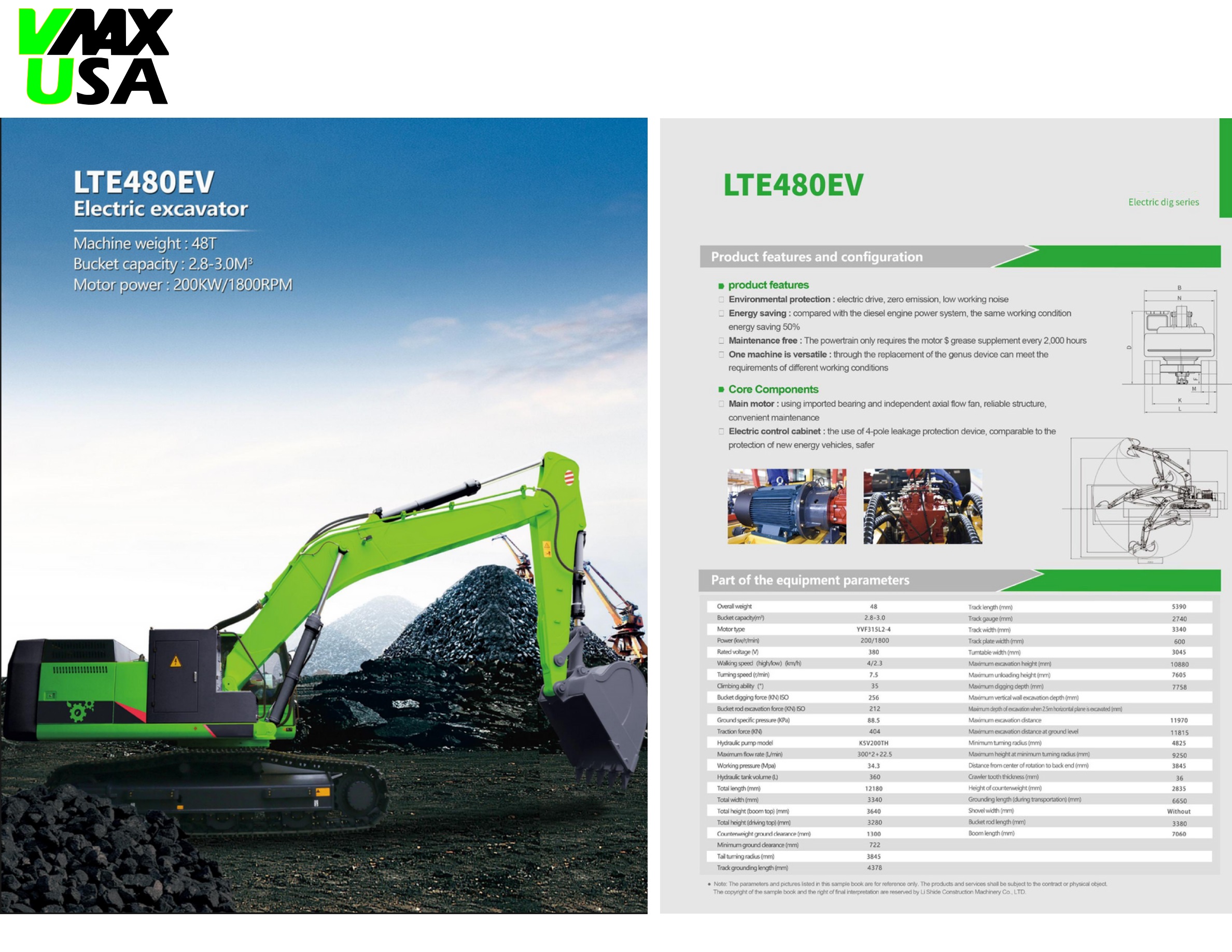 The LTE480EV excavator is a heavy-duty digging machine typically used in large-scale demolition, industrial or construction projects to transport large quantities of dirt or rubble. Equipped with a boom, dipper and bucket, this excavator is great for a variety of earthmoving and digging projects like trenching or clearing out dirt for foundations, snow removal, grading, river dredging, and more. Because of its multifunctionality, this excavator is a common tool to have on hand for any construction or maintenance team.