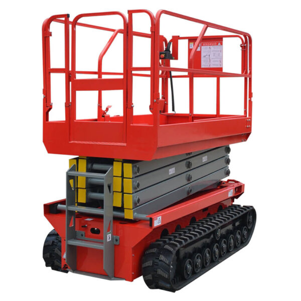 VMAXUSA Track Crawler Scissor Lift SJV0810LD. The 26-foot scissor lift is one of the more common platform heights, accommodating up to two workers and has a weight capacity of 992lbs, and is suitable for construction sites, large warehouses, production lines, and other tight working environments at medium heights to improve efficiency and is equipped with safe operating systems such as an emergency stop button, explosion-proof tubing, tilt protection, and troubleshooting to enhance safety.