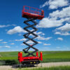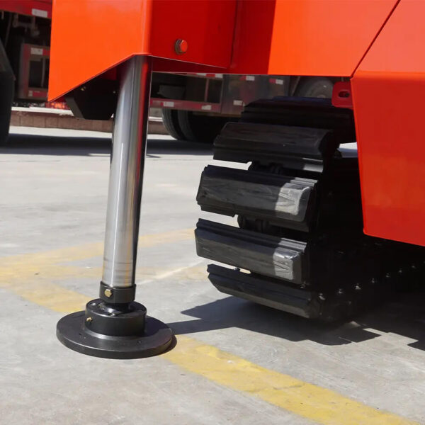 VMAXUSA Track Crawler Scissor Lift SJV1214LDS. The 40 foot scissor lift is one of the highest platform heights, accommodating up to two workers, and is suitable for construction sites, large warehouses, production lines, and other tall working environments to improve efficiency and is equipped with safe operating systems such as an emergency stop button, explosion-proof tubing, tilt protection, and troubleshooting to enhance safety. Equipped with self-leveling hydraulic outriggers with a full 12 inch lift for safe balanced work.